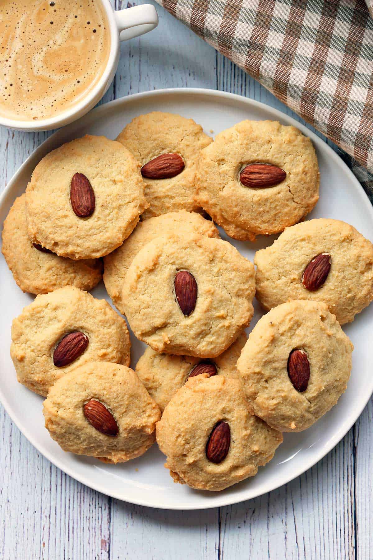 - Top each cookie with an almond, gently pressing it into the dough.12 raw almonds